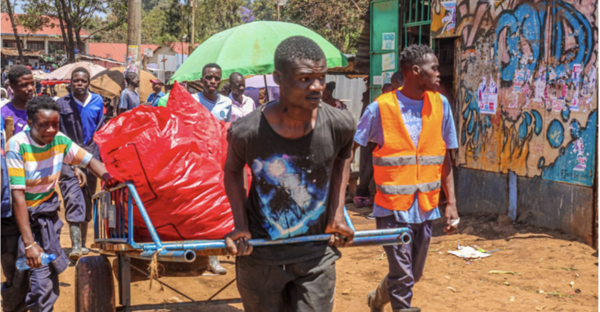 不適切な廃棄物管理の弊害は、眺めが悪くなるだけでなく、社会全体の経済や生活にも影響を及ぼしている。首都ナイロビでは、1日に推定2,400トンの固形廃棄物が発生し、そのうちの20%はプラスチックである。この廃棄物の約60%は、首都ナイロビ最大のスラム街であるキベラをはじめとするインフォーマルな居住区で見られ、その量は膨大である。残念ながらスラムにはゴミ捨て場がないため、すべてのゴミは次に利用できる場所に捨てられてしまう。ナイロビ川、道路、線路沿い、そして家庭の中にもゴミは堆積し、適切なリサイクル方法がないまま土壌や水に流れ込み、誰にとっても危険な状態になっている。この状況は、スラムにゴミ捨て場がないためにゴミがあちこちに散乱し、その結果、環境や水源が破壊され、コミュニティの人々の健康に害を及ぼすということで、さらに悪化している。